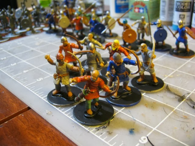 For wargames you need to put out 20-200 minis, in specific patterns, with some uniformity. That's not bad but these are dark ages vikings. They had no real organized army or uniform so your color palette for a rag-tag band of Norse raiders would be a wider spectrum than space marines or Romans. You end up with something like this:
